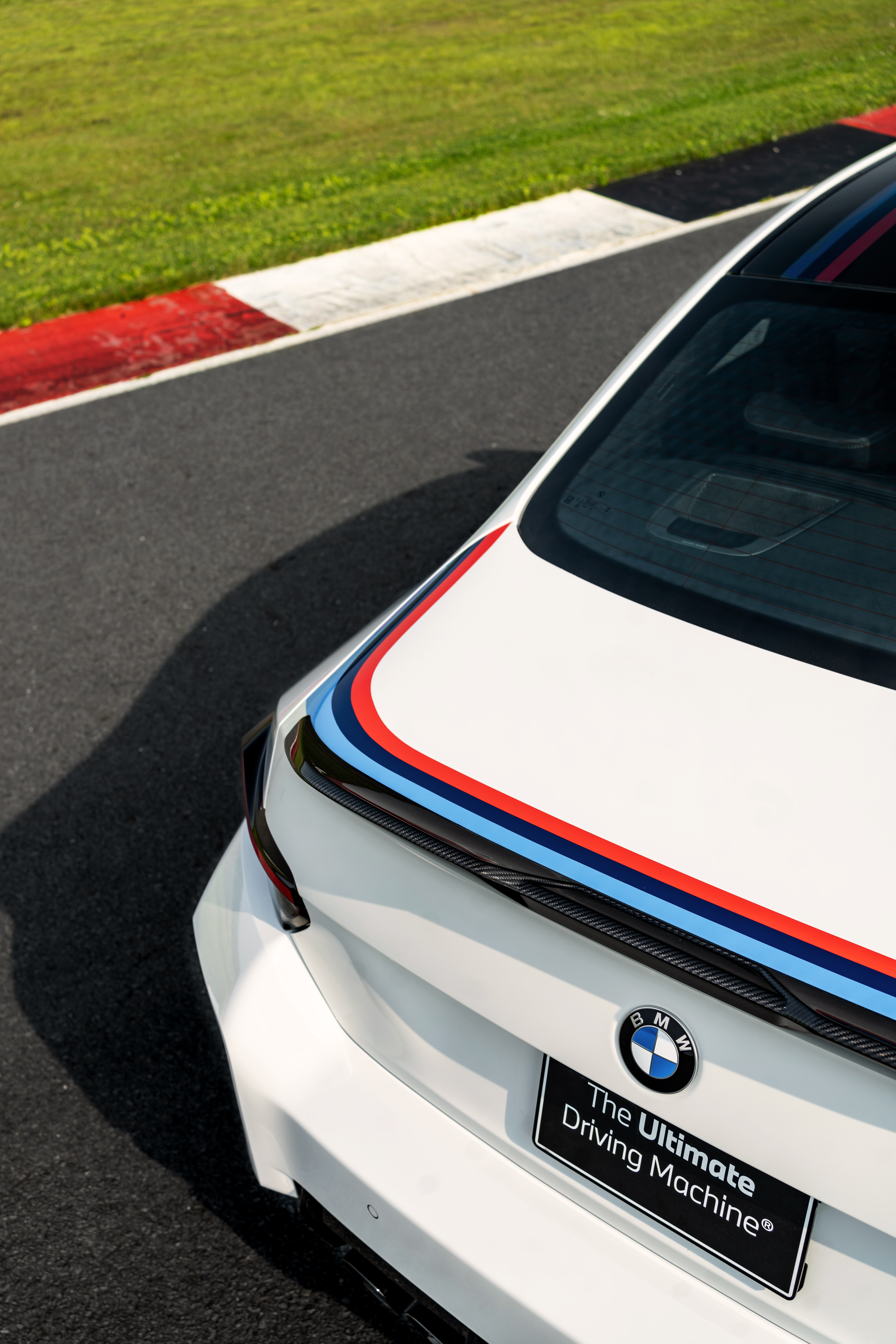 The 2026 M2 Turbo Design Edition is clearly inspired by the look of the original. Finished exclusively in brilliant Alpine White, it features bold, hand-painted BMW Motorsport stripes around the perimeters of the hood and trunk lid. The front and rear graphics are connected visually by additional tricolor stripes on the standard M Carbon roof panel.