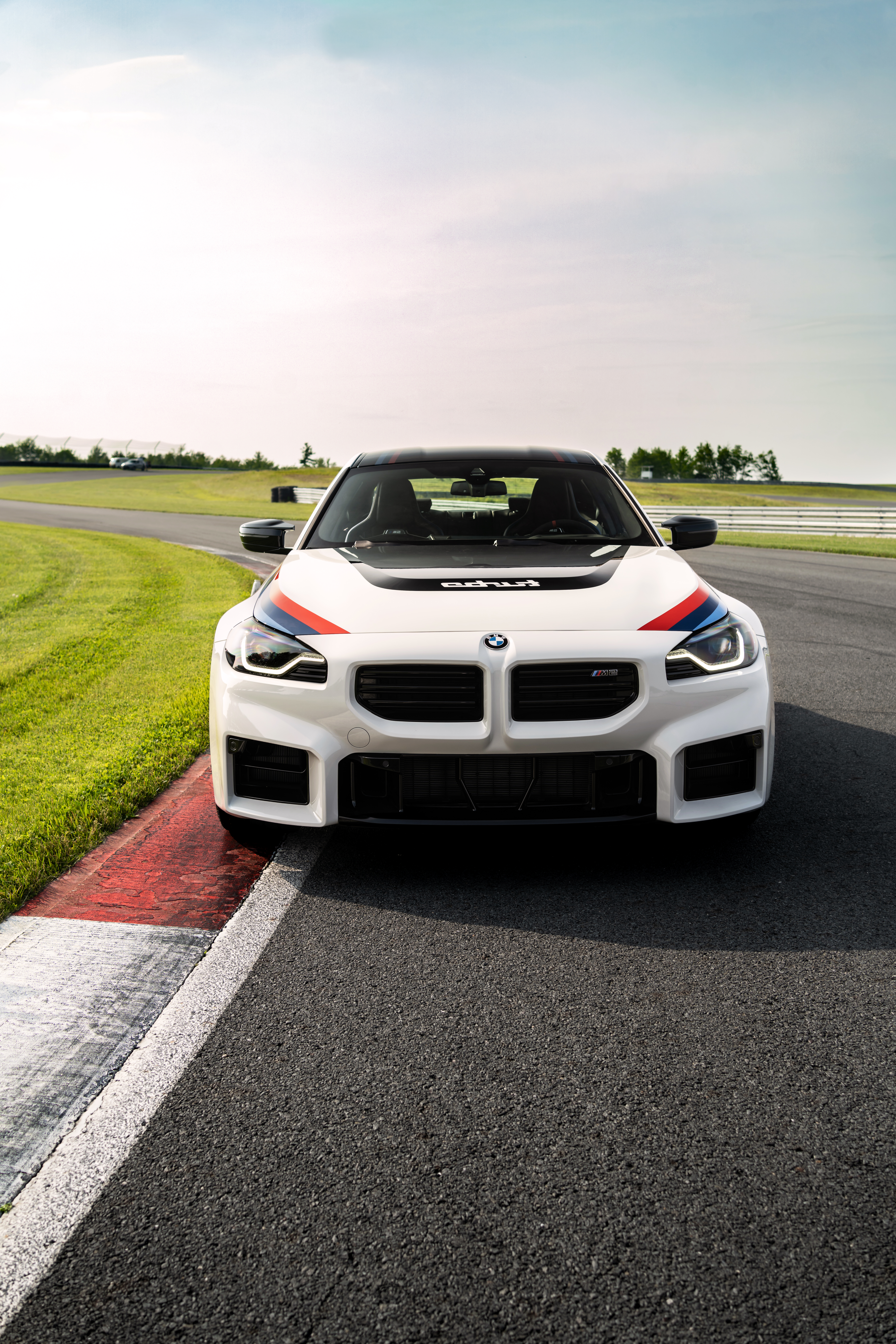 Woodcliff Lake, NJ – October 10,2025… Today, at the 2025 Motul Petit Le Mans at Road Atlanta, BMW revealed the limited edition 2026 M2 Turbo Design Edition. Its vivid Alpine White paint is draped in hand-painted Motorsport stripes and a black hood graphic with “turbo” in mirror writing, paying a reverential tribute to the legendary BMW 2002 turbo from 1974-1975.