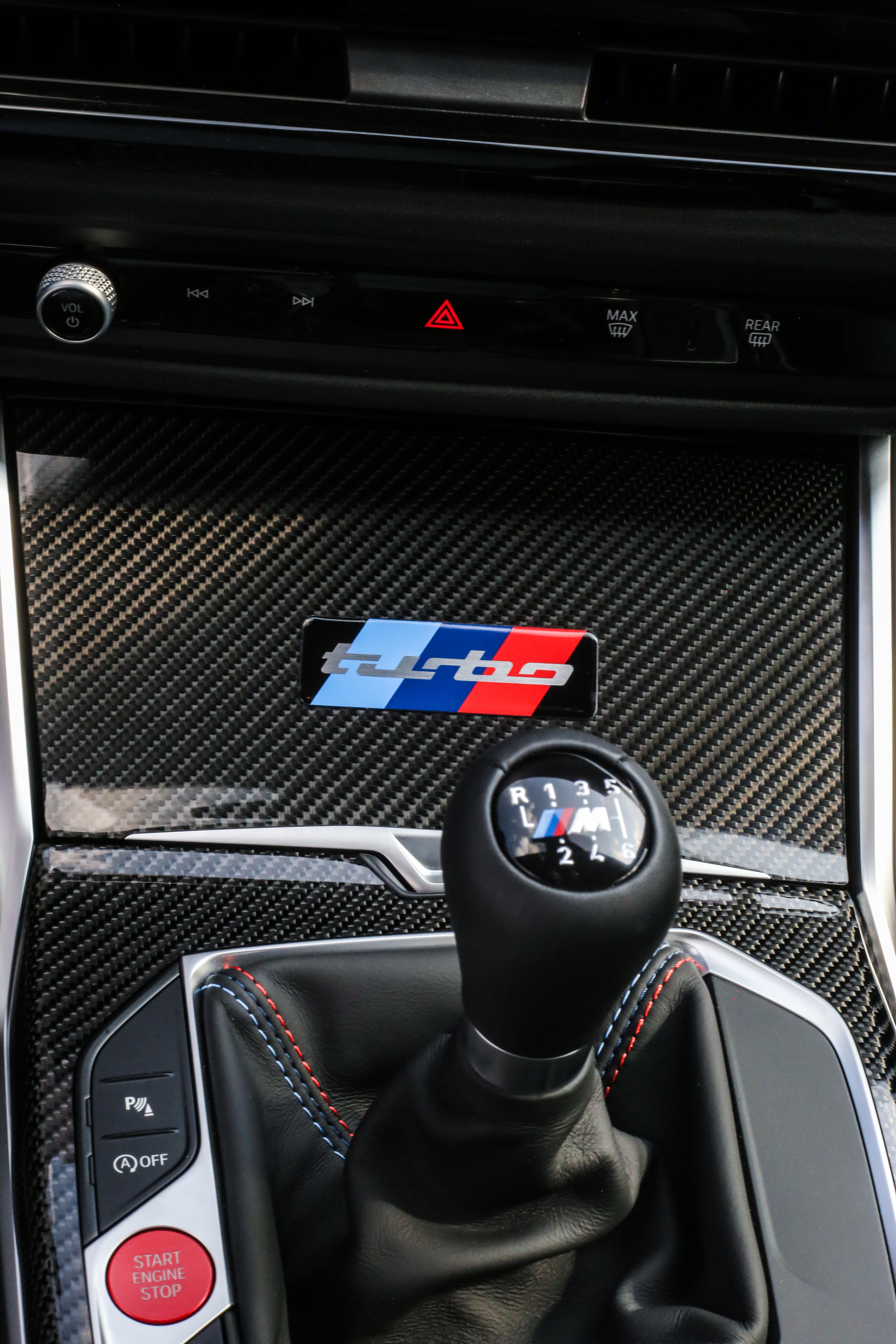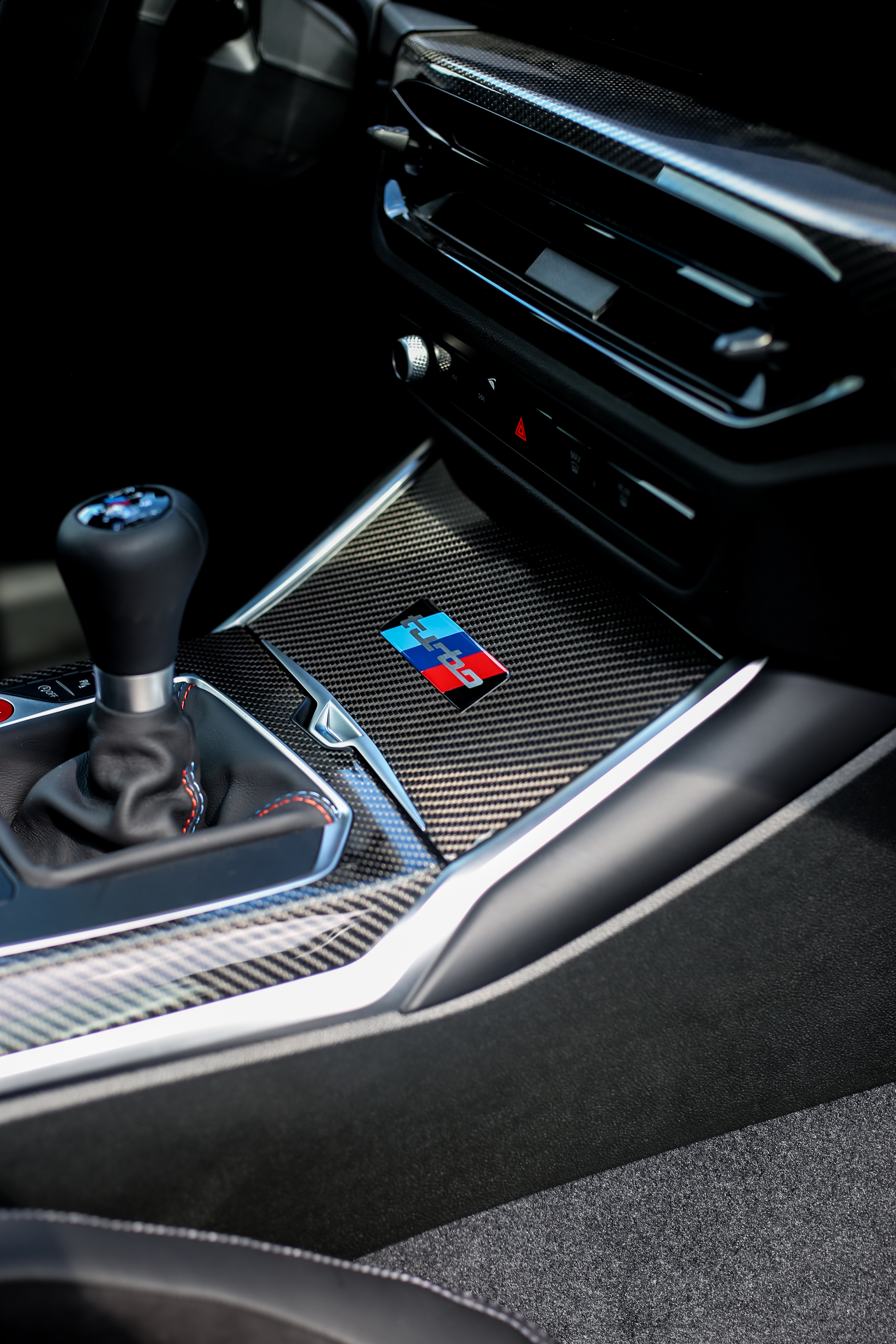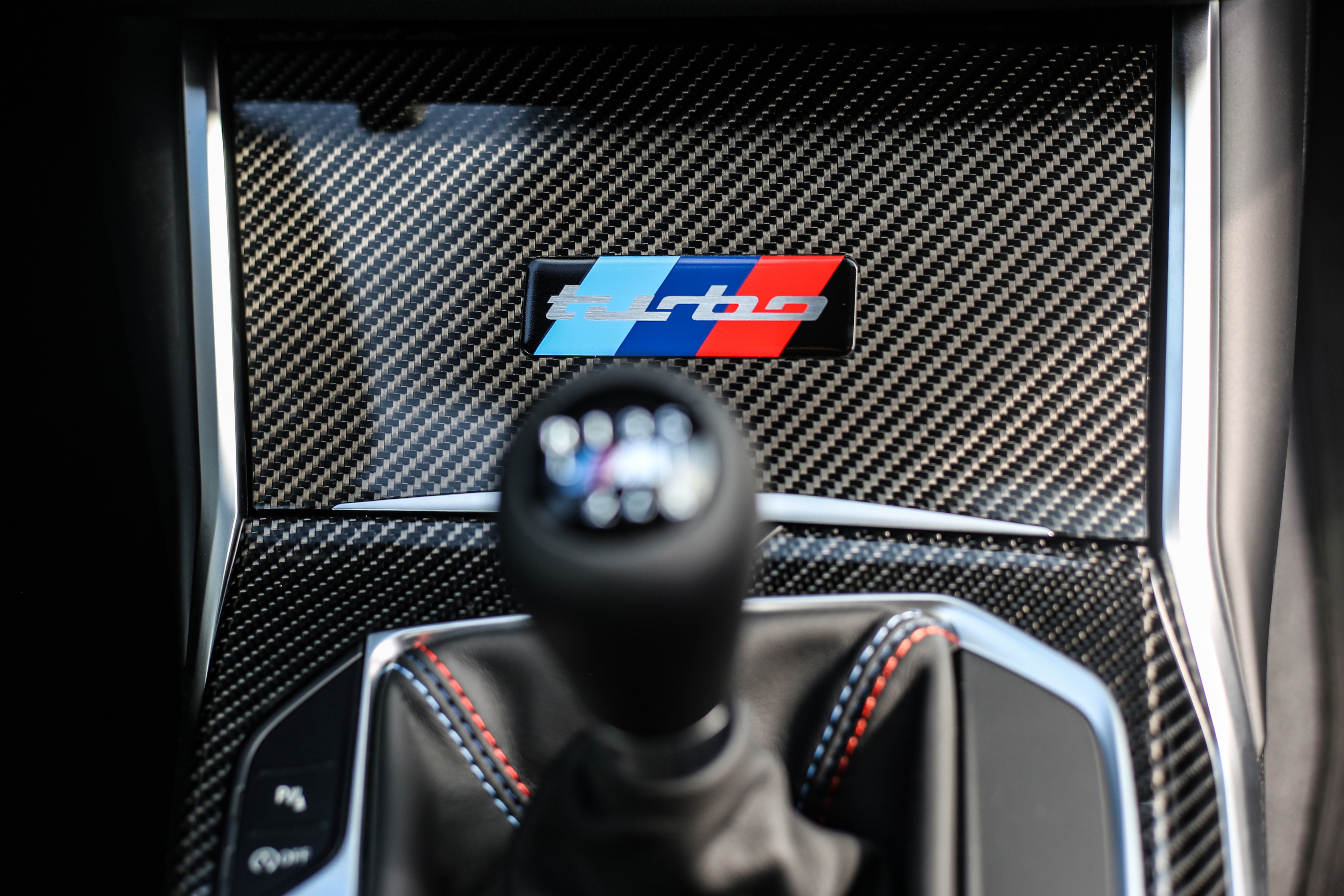 - M Carbon fiber trim including roof panel with integrated M tricolor stripes.